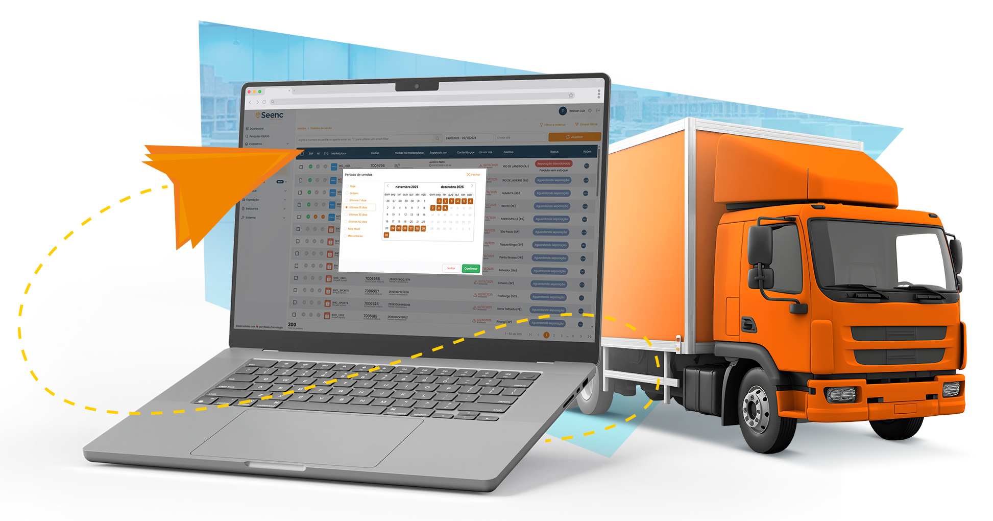 Seenc reduz deslocamentos com separação por onda, emissão unificada de etiqueta + NF e permite acompanhar todo o fluxo em tempo real até a expedição.